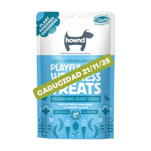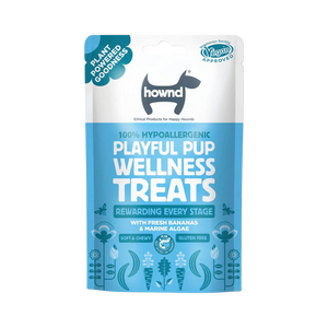 Las galletas veganas Playful Pup son perfectas para premiar a tu cachorro mientras empieza su aprendizaje, con plátano fresco y algas marinas para el desarrollo cerebral, estimular el sistema inmune y proveer la energía que necesita. También son ricas en calcio, para un desarrollo saludable de los huesos.