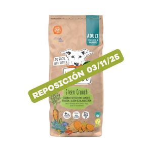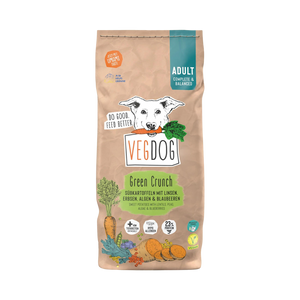 El pienso Vegdog Green Crunch es un alimento completo para perros adultos a partir de los 11 meses con una fuente alternativa de proteínas. independientemente de la raza y el tamaño y ofrece una variedad saludable para su alimentación. Contiene fuentes alternativas de proteínas, por lo que también es apto para perros sensibles y como dieta de exclusión.