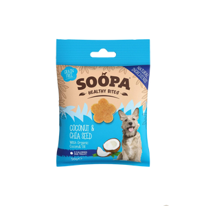 Estas galletas veganas para perros a base de coco y semillas de chia es sencillo pero nutritivo y sabroso. El aceite de coco, gracias a los triglicéridos de cadena media, ayuda al cerebro y la semilla de chia es rica en ácidos grasos omega 3 que favorecen un pelaje sano y brillante.