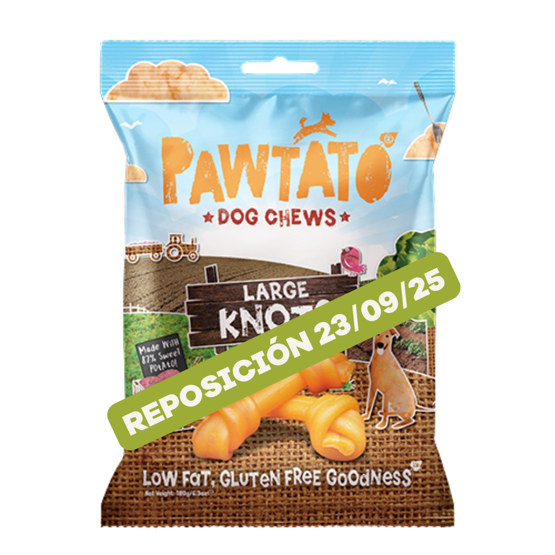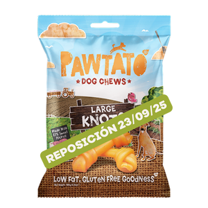 Los nudos veganos Pawtato son una recompensa hipoalergénica, saludable y deliciosa para tu perro. A base de boniato, un verdadero superalimento tambien para tu perro, combinado con arroz, estos nudos son por supuesto veganos, sin gluten y libres de colorantes y saborizantes artificiales.