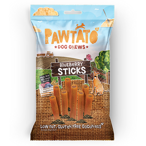 Los palitos vegetales Pawtato con arándanos en una base de boniato y arroz son un delicioso manjar bajo en grasas para tu perro e hipoalergénico. Estos premios son aptos para perros de cualquier tamaño a partir de 4 meses de edad. Vienen 8 por paquete.
