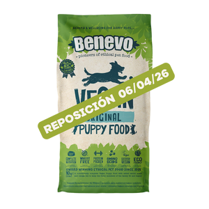 El pienso vegano para cachorros Benevo es un alimento completo para perros jóvenes de entre 1 mes y 2 años. No contiene ingredientes animales ni trigo. Este pienso contiene un 27% de proteína, y no lleva ingredientes modificados genéticamente. Además está complementados con vitaminas y minerales para que sea nutricionalmente completo y equilibrado para las necesidades del cachorro. Benevo no contiene colorantes ni conservantes añadidos.