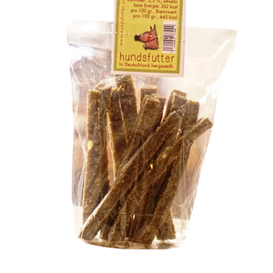 Estas tiras veganas y saludables de Hundsfutter son divertidas y deliciosas para masticar para todo tipo de perros. Con sus ingredientes de primera calidad y su cuidadosa formulación, no solo son un premio que tu perro adorará sino que también constituyen un equilibrado y nutritivo complemento alimenticio.